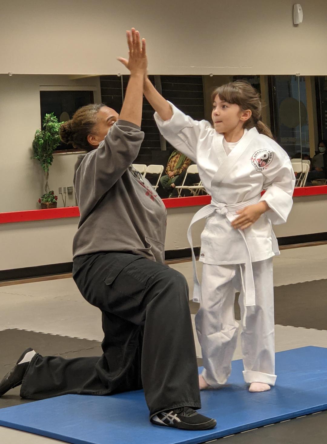 “My 4 year old LOVES going to her Kung Fu classes! Simo, the instructor, and the Shaolin Kung Fu Institute have helped restore calmness, discipline and order in my life with a defiant toddler. She listens better at home and school, often replying with ‘Yes, Ma’am!’ when I ask her to do something, hopping right up to do it. I am very pleased with the self-confidence she has gained, progress made on focus and listening, and she’s very much looking forward to gaining her yellow belt!” – Christie Henderson